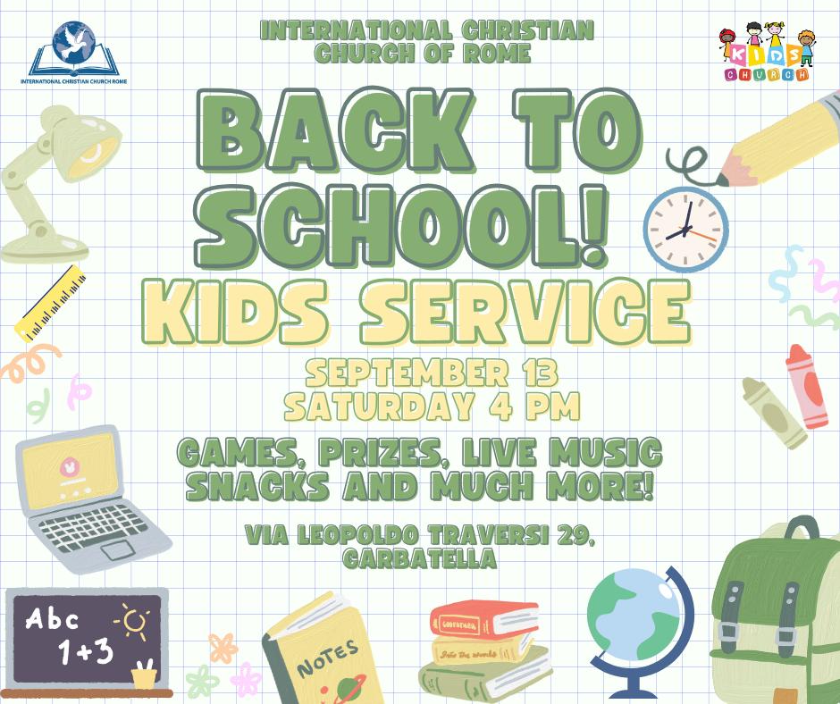 Don’t miss our “BACK TO SCHOOL! Kids Service” on September 13! From 5 to 13 years old.