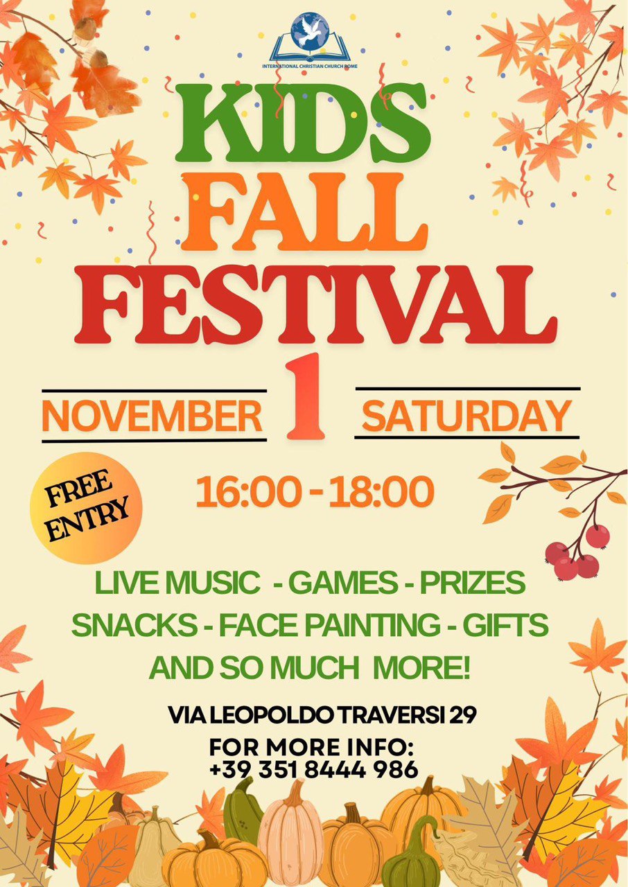 Save the date! Saturday, November 1 at 4:00 PM, come to our Kids’ Fall Festival!